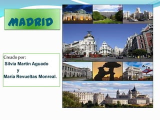 Madrid se encuentra en la meseta central española. La mayor parte de su territorio lo ocupan las llanuras del río Tajo, aunque también incluye la sierra de Guadarrama. Su clima es mediterráneo continental con inviernos fríos y veranos cálidos. La economía de Madrid se basa principalmente en el sector servicios, especialmente en la capital, aunque también tiene importancia la industria y el turismo.