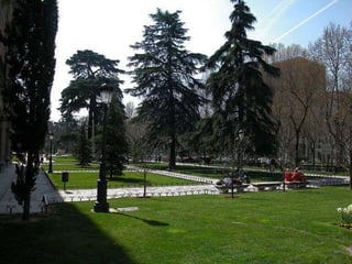 El documento menciona varios lugares notables en Madrid como el Monasterio de El Escorial, el Palacio Real, la Plaza de Cibeles, el Estadio Santiago Bernabéu, el Puerto de Alcalá, el Museo del Prado, la Plaza de España, la Catedral de Santa María la Real, la Puerta del Sol, el Ministerio de Agricultura, la Ópera, la Plaza de Oriente y el Palacio Real.