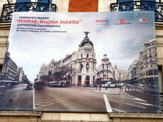 La exposición fotográfica presenta imágenes de la región de Madrid tomadas por Fernando Manso durante un año, buscando capturar la belleza a través de los cielos, la luz y la atmósfera. Manso pasó hasta 18 días esperando las condiciones de luz adecuadas para cada foto, retratando paisajes conocidos desde una nueva perspectiva e intentando evitar clichés. El resultado es una colección de fotos que muestran la naturaleza y lugares emblemáticos de Madrid de una manera pura y art