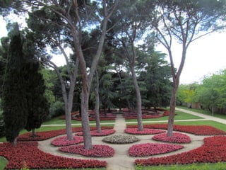 El Parque El Capricho fue mandado construir por la duquesa de Osuna entre 1787 y 1839 en Madrid. Cuenta con 14 hectáreas y constituye el único jardín del Romanticismo en la ciudad, con características como un laberinto de arbustos, estanques y edificios como un palacete y ermita. La duquesa encargó su diseño al arquitecto francés Jean-Baptiste Mulot y actualmente es propiedad del Ayuntamiento de Madrid.