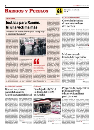 Este documento contiene tres artículos breves sobre temas relacionados con el movimiento 15M en Madrid. El primer artículo habla sobre la necesidad de construir una respuesta organizada a los recortes y la reforma laboral previstos para el 2012. El segundo artículo trata sobre una protesta de vecinos contra un macrovertedero en Loeches. El tercer artículo cubre una campaña en memoria de Ramón Barrios, quien murió bajo circunstancias extrañas mientras estaba bajo custodia policial.