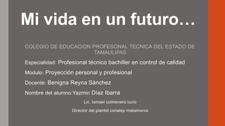 La autora tiene 16 años y planea continuar estudiando su carrera de "maquinas y herramientas" en la preparatoria para conseguir becas. En un año hará su servicio social y trabajar para ayudar económicamente a su familia. Dentro de dos años tendrá su propio auto y trabajo mejor mientras continúa sus estudios. Luego estudiará ingeniería en el Tecnológico de Matamoros y tomará cursos de inglés. En tres años estará en la universidad trabajando para ascender. Después estudiará una ma