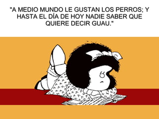 Este documento contiene varias frases célebres de Mafalda, la famosa niña de historieta creada por Quino, que cuestionan aspectos sociales, políticos y existenciales de una manera ingeniosa y aguda. Algunas de las frases se refieren a la política, la modernidad, la rutina laboral y la condición humana.