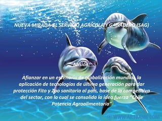 El documento propone una nueva visión para el Servicio Agrícola y Ganadero de Chile que lo convierta en una institución de vanguardia e innovadora. Sus lineamientos estratégicos incluyen la implementación de sistemas digitales, tecnología de mapas, nanotecnología y trabajo remoto para mejorar la fiscalización, trazabilidad de productos y capacitación del personal. También sugiere crear centros de información e involucrar a la comunidad a través de audiencias y programas virtuales.