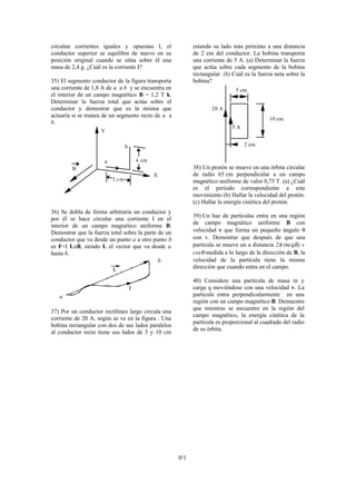 1) El documento presenta una serie de problemas relacionados con campos magnéticos, inducción magnética y ondas electromagnéticas. Incluye problemas sobre determinar el campo magnético en diferentes puntos debido a corrientes eléctricas, fuerzas magnéticas sobre conductores, inducción electromagnética en bobinas y solenoides, y relaciones entre campos eléctricos y magnéticos en ondas electromagnéticas.