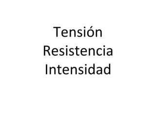 Este documento describe las magnitudes eléctricas básicas de tensión, resistencia e intensidad. Define la resistencia como la capacidad de un material para conducir corriente eléctrica, la intensidad como la cantidad de carga eléctrica que pasa por un conductor en un tiempo, y la tensión como la energía transferida a cada carga. Además, presenta la ley de Ohm, que establece que la tensión es directamente proporcional a la intensidad e inversamente proporcional a la resistencia en un circuito eléctrico.