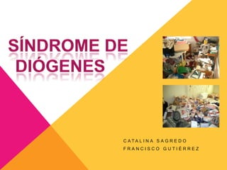 El síndrome de Diógenes se caracteriza por el aislamiento social voluntario, el encierro en el domicilio, el rechazo de ayuda y el descuido personal e higiene. Sus causas más comunes incluyen la pérdida de un ser querido, la soledad y el rechazo familiar. Las manifestaciones clínicas son apariencia descuidada, pérdida de peso y en algunos casos demencia. El tratamiento involucra apoyo ambulatorio y hospitalario, así como medicamentos.