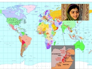 Este documento describe la historia de Malala Yusafzai, una niña paquistaní que lucha por los derechos de las mujeres a la educación. Los talibanes prohibieron que las niñas asistieran a la escuela y Malala comenzó un blog anónimo para contar sus experiencias. Fue baleada por los talibanes por su activismo, pero sobrevivió y continúa luchando por los derechos de las mujeres a nivel mundial a pesar de las amenazas contra su vida.