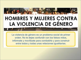 La declaración de las Naciones Unidas de 1993 aborda la violencia de género como un acto que causa daño físico, sexual o psicológico a las mujeres, subrayando su prevalencia como mecanismo de control social. En España, se reportaron 134,002 casos en 2011, con un total de 681 víctimas mortales por violencia de género entre 1999 y 2009. El documento enfatiza la importancia de relaciones igualitarias y de actuar contra cualquier tipo de violencia, resaltando que cualquiera puede ejercerla si lo decide.