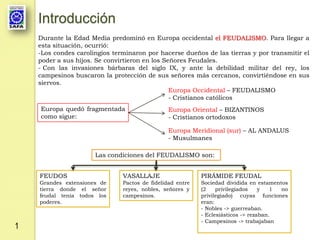 La Europa medieval entre los siglos IX y XI estuvo dominada por el sistema feudal. La sociedad se organizó en una pirámide jerárquica donde los campesinos estaban en la base y debían trabajar las tierras de los nobles a cambio de protección. La Iglesia también tuvo un gran poder e influencia social y cultural durante esta época.
