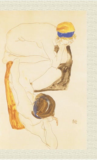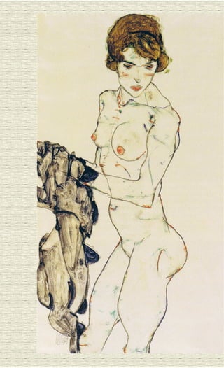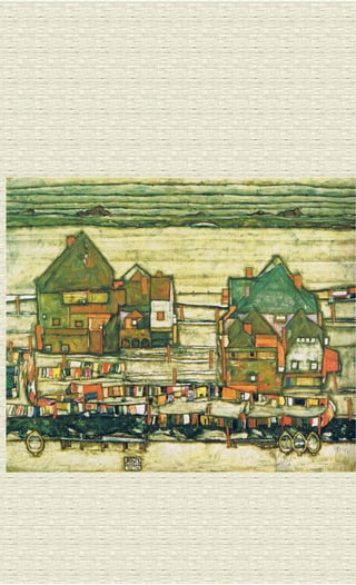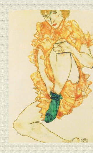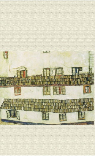 El documento describe la experiencia de Egon Schiele mientras estaba encarcelado por 24 días en 1912. Schiele sufrió en la sucia y fría celda sin poder lavarse o afeitarse adecuadamente. Aunque al principio no tenía materiales para dibujar, luego se los permitieron, lo que lo ayudó a soportar el encierro. Schiele describió con detalles la celda y dibujó varias escenas de la prisión. Rogó a Dios por su liberación, pero se sentía olvidado por el juez a cargo de su caso. El arte fue