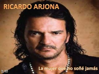 El documento es la letra de la canción "La mujer que no soñé jamás" de Ricardo Arjona. La canción habla de un hombre que se enamoró de una mujer que no encaja con los estereotipos de belleza convencionales. Describe a la mujer como alguien tímida, poco atractiva para los demás y que prefiere los libros a las discotecas. Sin embargo, el cantante ama a esta mujer porque es auténtica y vive sin preocuparse por las apariencias. A pesar de que nunca soñó enamorarse de algui