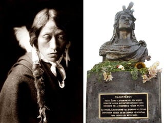 El poema describe la llegada de los conquistadores españoles a México y la maldición que esto supuso para el pueblo mexicano. Los mexicanos, temerosos de lo desconocido, les dieron la bienvenida a los españoles y les entregaron su cultura, religión y riquezas. A cambio recibieron espejos y cuentas de vidrio. Aunque han pasado siglos, los mexicanos siguen siendo humillados en su propia tierra y recibiendo con hospitalidad a los extranjeros mientras desprecian a sus pro