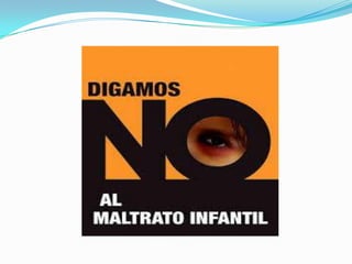 El documento habla sobre el maltrato infantil como un problema grave en la sociedad. Describe diferentes formas de maltrato como el abuso físico, emocional, abandono físico y emocional. La misión es lograr espacios pacíficos para las familias y educar a los padres en el cuidado de los niños. La visión es una campaña para prevenir el maltrato infantil y promover el cuidado apropiado de los niños.