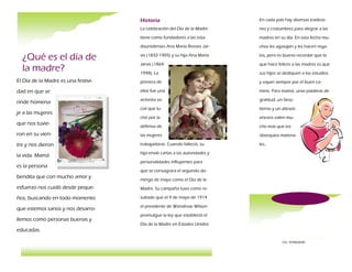 El segundo documento explica que el Día de la Madre fue establecido en Estados Unidos por Ana Jarvis para homenajear a las madres por su