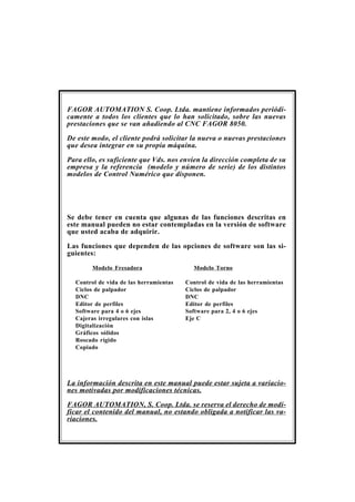 Si Usted acabade adquirir el MODELO CNC FAGOR 8050 GP debe tener en cuen-ta