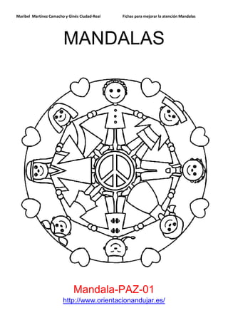 El documento presenta una serie de 10 mandalas creados por Maribel Martínez Camacho y Ginés Ciudad-Real para mejorar la atención, y proporciona el enlace a cada mandala en el sitio web orientacionandujar.es.