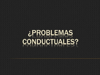Este documento describe factores de riesgo y protectores para problemas de conducta en niños, así como consejos y métodos para el manejo conductual de padres. Identifica factores biológicos, personales y familiares de riesgo, y factores protectores individuales y de apoyo social/familiar. Recomienda el uso de refuerzos, castigos lógicos y "tiempo fuera", además de enfatizar la coherencia, comunicación y modelo de los padres.