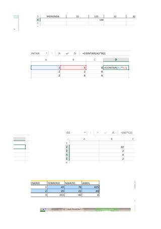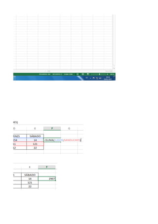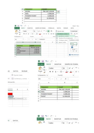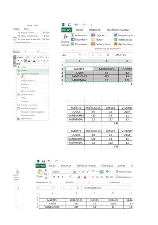 Este documento presenta una serie de lecciones sobre el uso de Excel. Cubre temas como abrir Excel, navegar entre celdas, filas y columnas, formato de texto, tablas, gráficos, funciones matemáticas, y recomienda realizar más prácticas para aumentar el conocimiento sobre este programa de hojas de cálculo.