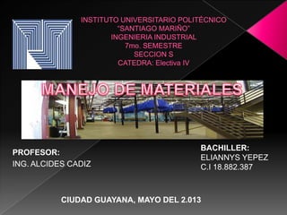 El documento presenta 10 principios fundamentales para el manejo de materiales. Estos principios incluyen la planificación, normalización de métodos, reducción del trabajo, ergonomía, unidad de carga, uso del espacio, integración de sistemas, automatización, medio ambiente y análisis de costos del ciclo de vida.
