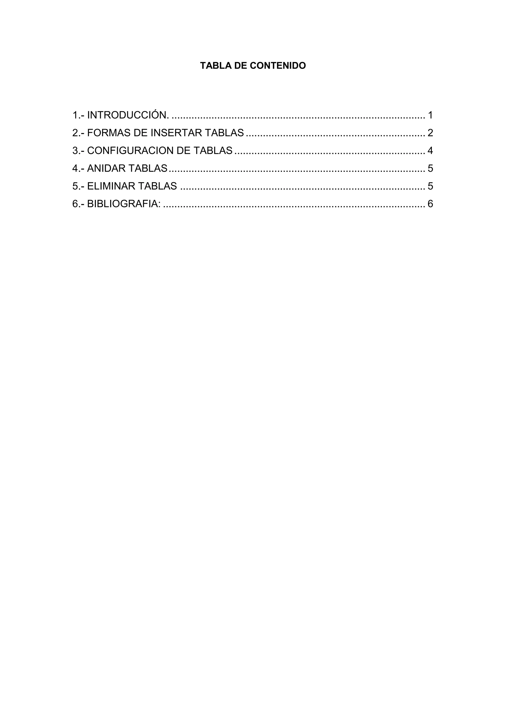 Este documento explica cómo crear y configurar tablas en Microsoft Word. Describe tres métodos para insertar tablas: dibujar la tabla, seleccionar el número de filas y columnas, e ingresarlos en un cuadro de diálogo. También cubre cómo configurar propiedades de tabla, anidar tablas dentro de otras, y eliminar tablas o partes de tablas. El objetivo es proporcionar instrucciones sobre el uso básico de tablas en Word.