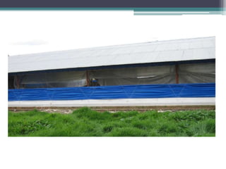 El documento proporciona un manual exhaustivo sobre el manejo de pollos de engorde en Ecuador, incluyendo las especificaciones de instalaciones, requerimientos de temperatura, ventilación, y alimentación. Se detallan aspectos fundamentales como la construcción de galpones, sistemas de bebederos y comederos, así como el manejo sanitario y vacunación a lo largo de las semanas de crecimiento. Además, se analizan parámetros productivos y eficiencia alimenticia para asegurar el correcto desarrollo y bienestar de las aves.