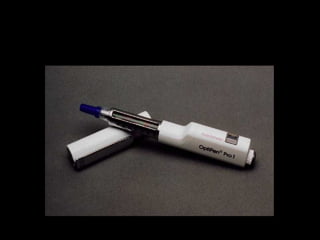 Este documento resume las aplicaciones clínicas de la insulina. Explica la fisiología de la insulina, sus diferentes tipos y galenicas. Detalla las indicaciones para iniciar terapia insulínica en diabetes tipo 1 y 2. Describe el seguimiento requerido y complicaciones potenciales. Resalta la importancia histórica del descubrimiento de la insulina pero también sus limitaciones como tratamiento definitivo para la diabetes.