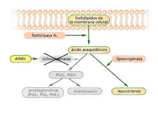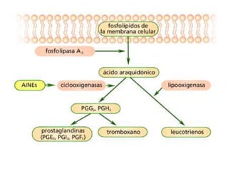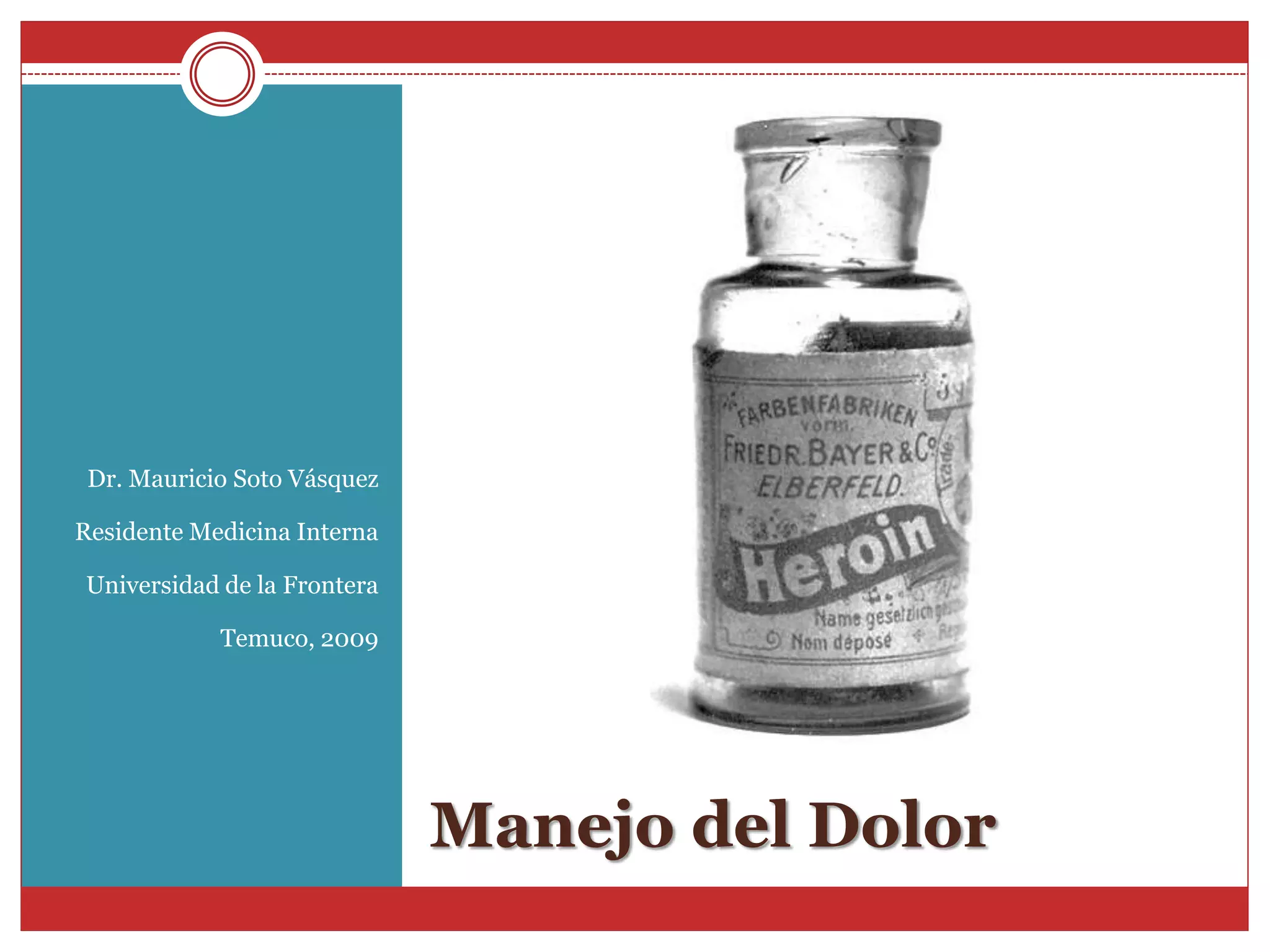 Este documento discute el manejo del dolor y clasifica diferentes tipos de medicamentos analgésicos como opioides, antiinflamatorios y coadyuvantes. Explica cómo funcionan los opioides al unirse a receptores específicos y cómo se usan medicamentos como la morfina, fentanilo y buprenorfina para el tratamiento del dolor. También cubre las escalas para medir el dolor y los posibles efectos secundarios de los analgésicos.