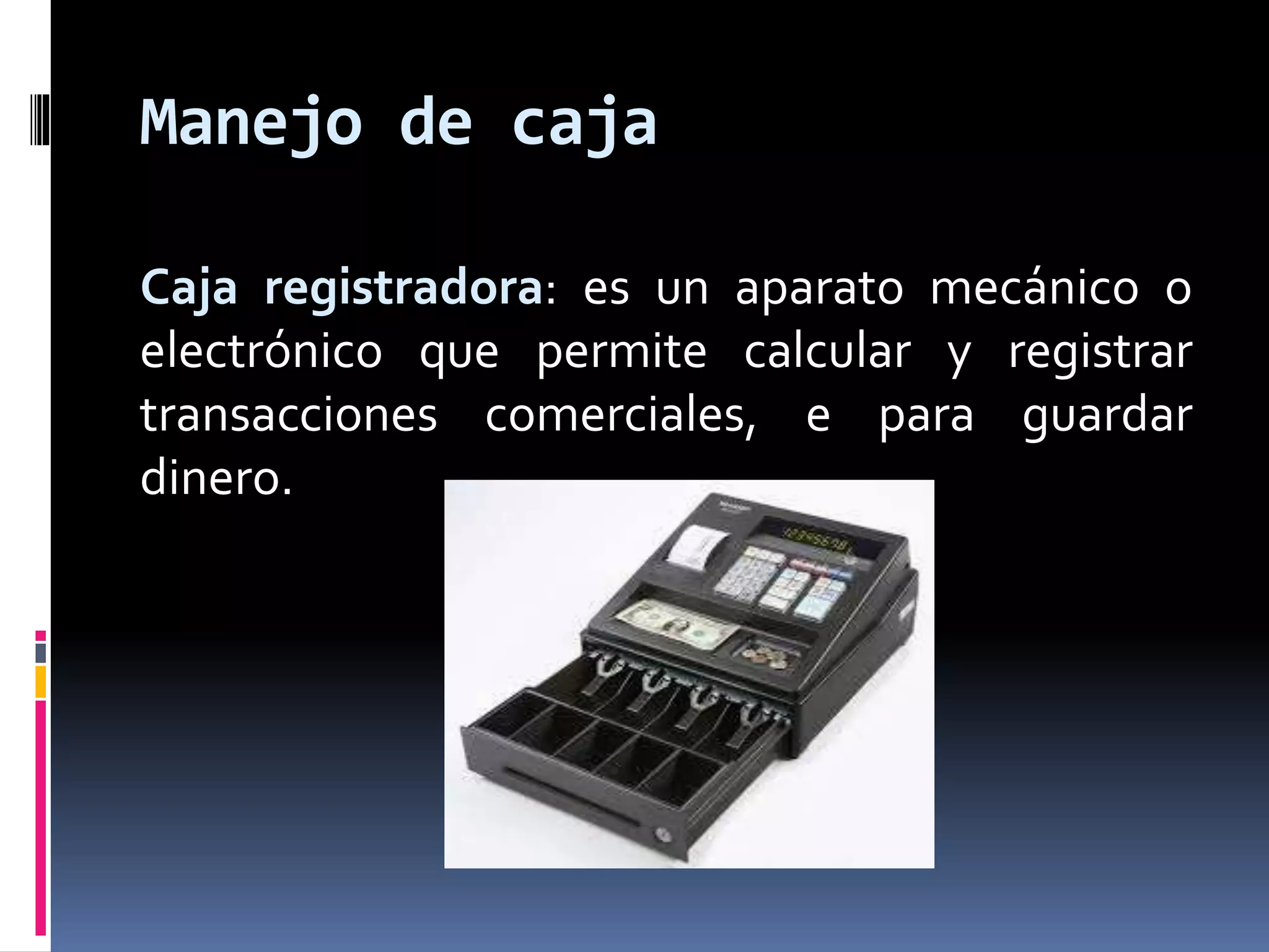 Este documento trata sobre el manejo de valores y las responsabilidades de los cajeros. Describe los diferentes tipos de documentos y procesos relacionados con el manejo del efectivo en un negocio, incluyendo facturas, recibos de pago anticipado, informes de cajeros, cambio de divisas y el uso apropiado de tarjetas de crédito y débito. También cubre el uso de una caja registradora, caja de seguridad y el depósito y manejo de efectivo por los cajeros.