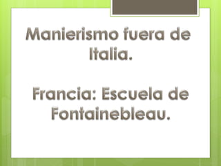 El documento describe el período artístico del Manierismo en el siglo XVI, caracterizado por el desarrollo del arte en Italia, con pinturas que mostraban figuras en posturas exageradas y colores extraños. También discute eventos religiosos y políticos importantes durante ese tiempo, como las obras de Lutero y Enrique VIII que llevaron a la Reforma Protestante, y el surgimiento del estilo Barroco en el siglo XVII en respuesta a cambios en la Iglesia Católica.