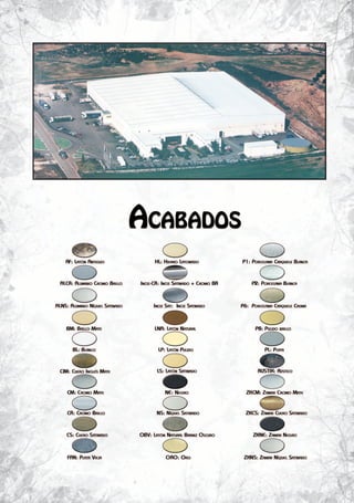 Este documento contiene una lista de manillas y accesorios de latón e inoxidable con sus respectivos códigos. Se describen varias series de productos incluyendo medidas, materiales y códigos de acabado. La información se presenta de forma ordenada por serie y modelo.
