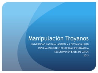 Este documento describe las funciones y configuración del troyano OptixPro. Explica cómo configurar un servidor para ocultar su presencia, generar un archivo ejecutable con un icono engañoso, y ocultar su proceso. También cubre el uso del cliente para conectarse al servidor, robar y transferir archivos, capturar información del sistema, keylogger y duplicación de pantalla para espiar al usuario. El objetivo final es probar las capacidades de este troyano de forma encubierta en máquinas virtuales.