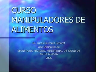 Este documento presenta un resumen de un curso para manipuladores de alimentos. Explica que las causas más comunes de intoxicación alimentaria son microbios patógenos como estafilococos, clostridios y salmonela, los cuales se propagan fácilmente a través de las manos de los manipuladores de alimentos. También destaca la importancia de lavarse bien las manos con agua, jabón y cepillo de uñas para prevenir la contaminación de los alimentos.