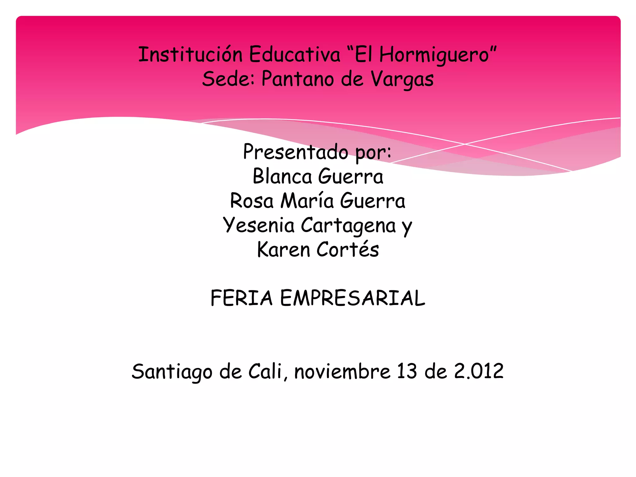 El documento presenta un proyecto de una feria empresarial realizado por estudiantes del grado undécimo de la Institución Educativa “El Hormiguero” en Santiago de Cali. El proyecto aprovecha el reciclaje de revistas para elaborar manillas y participar en la feria con el objetivo de entender la metodología de una microempresa y generar oportunidades de aprendizaje.