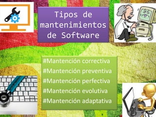 El documento define el mantenimiento de software como la modificación de un producto de software después de su entrega para corregir defectos, mejorar el rendimiento u otros atributos, o adaptarlo a cambios en el entorno. Identifica cinco tipos de mantenimiento de software: correctivo, preventivo, perfectivo, evolutivo y adaptativo.