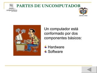 El documento proporciona una guía sobre el hardware y software de computadoras. Explica los componentes principales del hardware como la tarjeta madre, procesador, memoria y dispositivos de entrada/salida. También cubre recomendaciones de seguridad al trabajar con hardware y cómo ejecutar herramientas de mantenimiento preventivo como Defrag, Scandisk y antivirus.