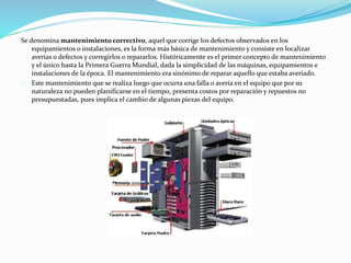 El mantenimiento correctivo consiste en localizar y corregir defectos u averías en equipos e