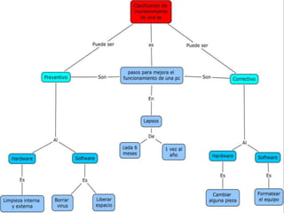 El documento detalla la importancia y procedimientos del mantenimiento preventivo de hardware y software en computadoras, incluyendo rutinas de limpieza, revisión de componentes y el uso de herramientas adecuadas. Se enfatiza la necesidad de realizar estas tareas periódicamente para prolongar la vida útil del equipo y evitar fallas, así como la relevancia de utilizar antivirus y realizar copias de seguridad de datos. También se proporcionan pautas específicas para el formateo e instalación de sistemas operativos en computadoras.