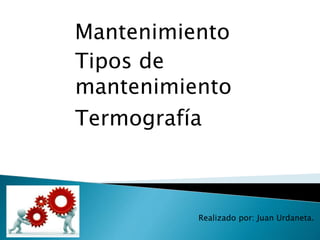 1) El documento describe diferentes tipos de mantenimiento como preventivo, correctivo y predictivo, así como la evolución del concepto de mantenimiento a través de cuatro generaciones.