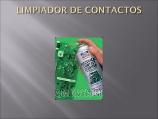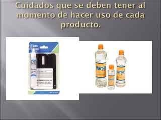 El documento proporciona información sobre productos químicos y equipos utilizados para el mantenimiento de una computadora personal. Describe los componentes que se deben limpiar, incluidos el gabinete interno, monitor, teclado y mouse. También incluye instrucciones de seguridad y advertencias sobre cada producto químico.