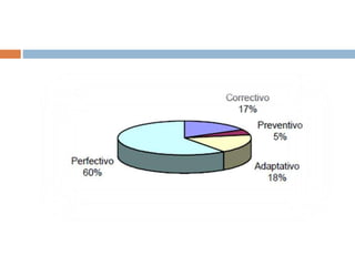 Este documento trata sobre el mantenimiento de software. Explica los diferentes tipos de mantenimiento (correctivo, adaptativo, perfectivo y preventivo), las actividades que implica el mantenimiento como la comprensión del cambio, codificación y pruebas, y las dificultades como el código heredado que puede volverse más complejo con cada cambio.