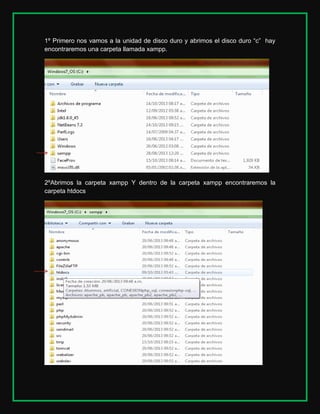 2ºAbrimos la carpeta xampp Y dentro de la carpeta xampp encontraremos la