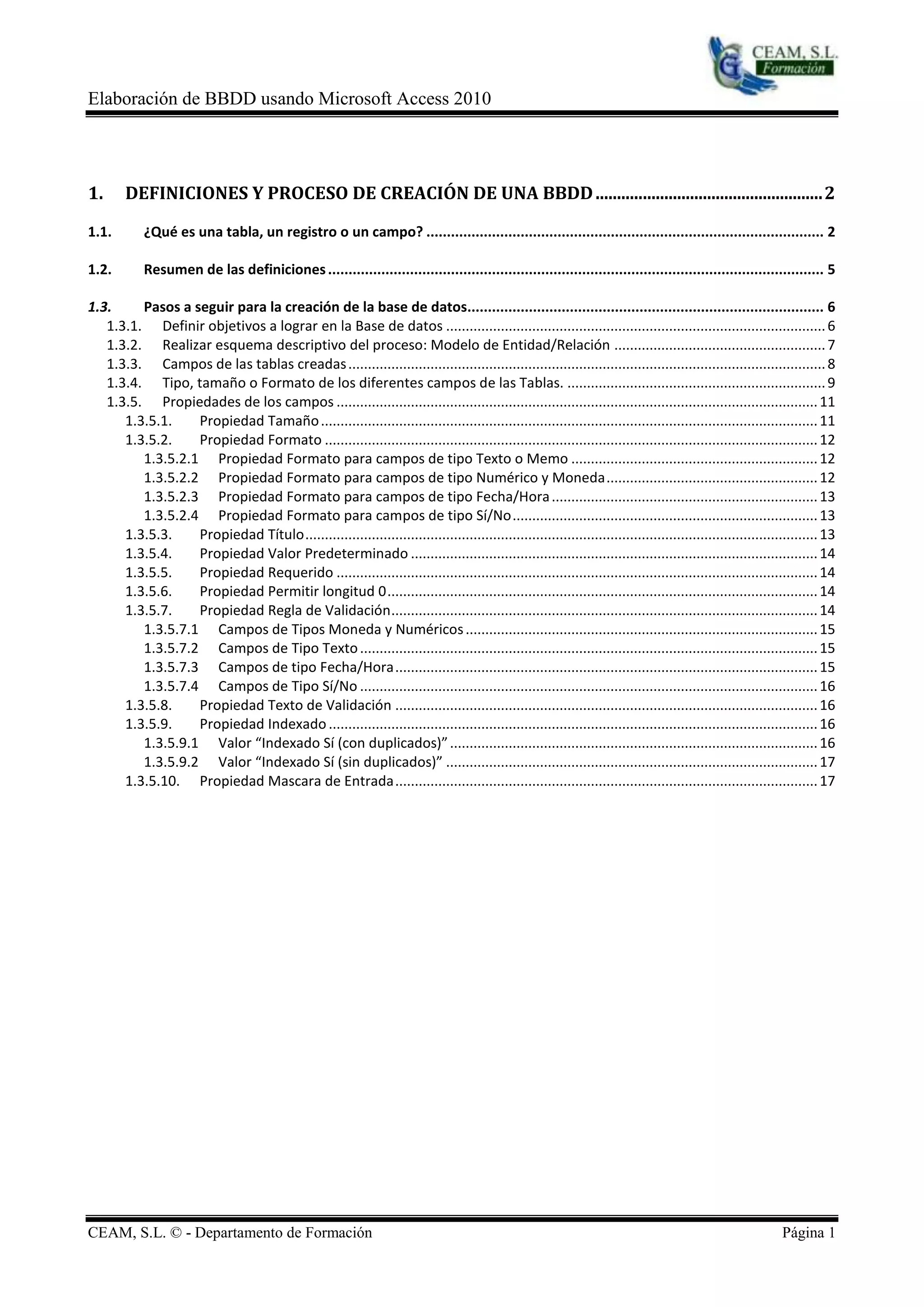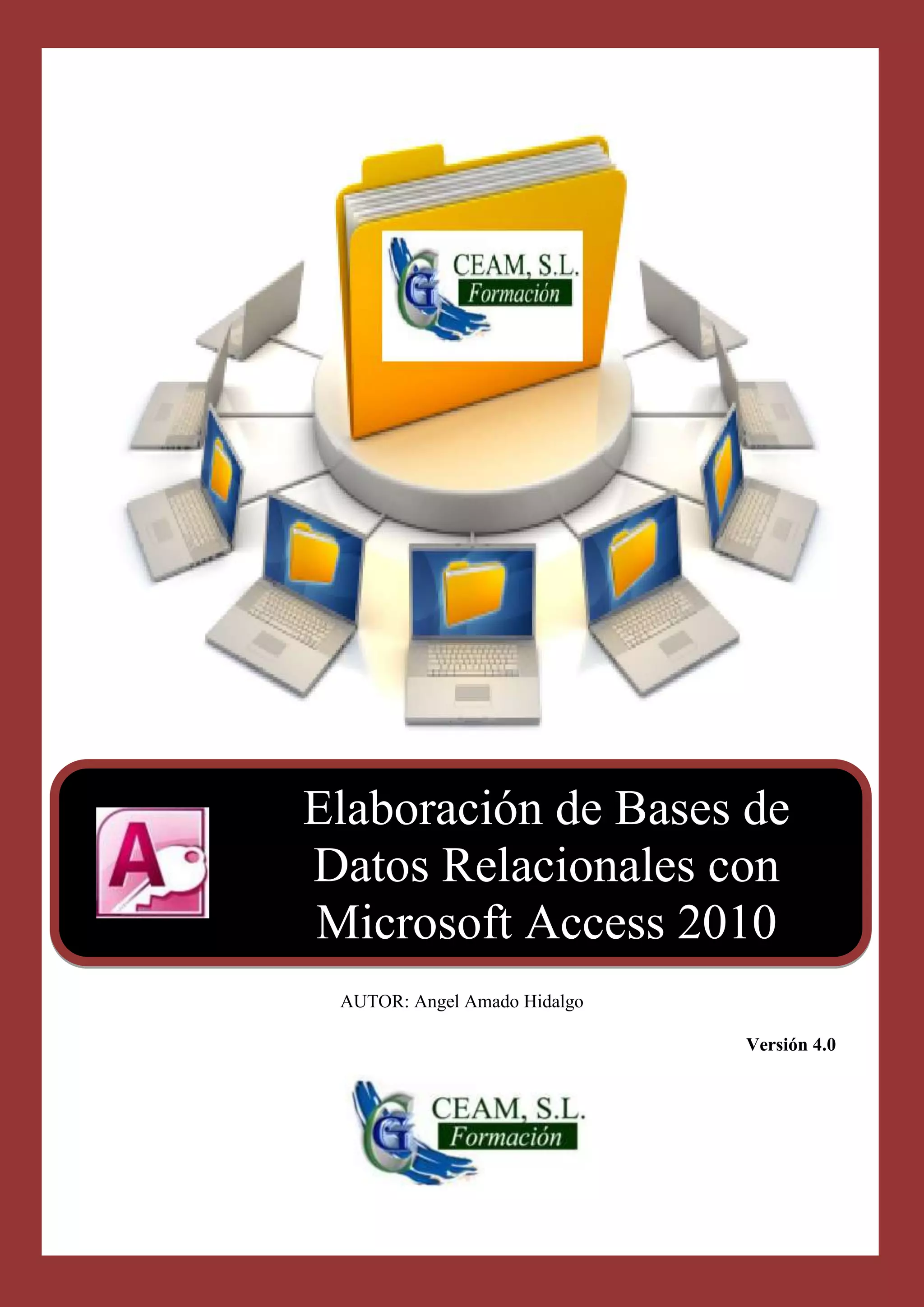Este documento describe los pasos para crear una base de datos relacional en Microsoft Access. Explica conceptos clave como tablas, registros, campos y sus propiedades. Luego, detalla el proceso de creación de una base de datos, incluyendo definir objetivos, crear un modelo de entidad-relación, determinar los campos de cada tabla y configurar sus propiedades. El objetivo de la base de datos de ejemplo es llevar el control de alquileres y devoluciones de libros en una librería.