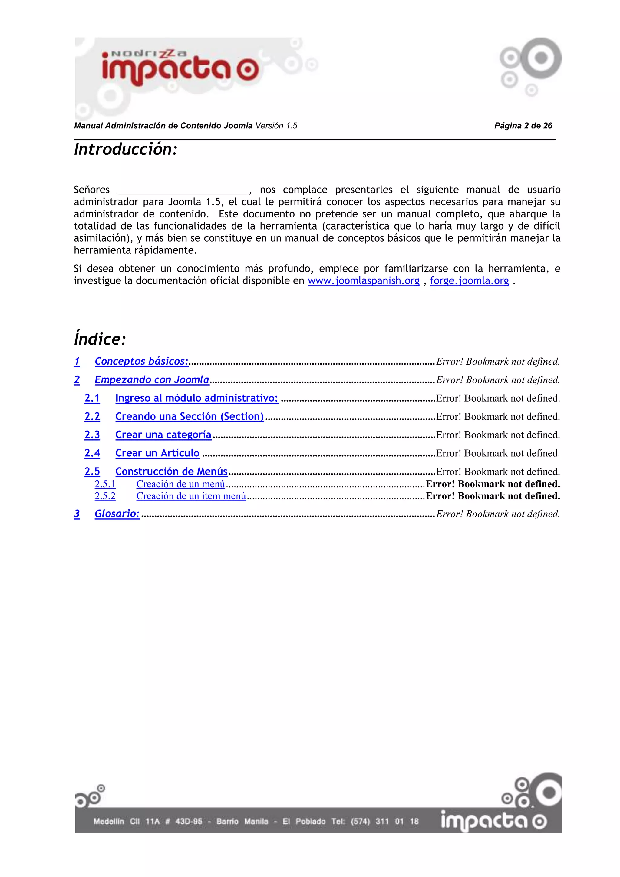 El documento explica los conceptos básicos de Joomla 1.5, incluyendo cómo crear secciones, categorías y artículos de contenido, así como cómo construir menús de navegación. También describe el proceso de ingresar al administrador de Joomla y gestionar el contenido del sitio.