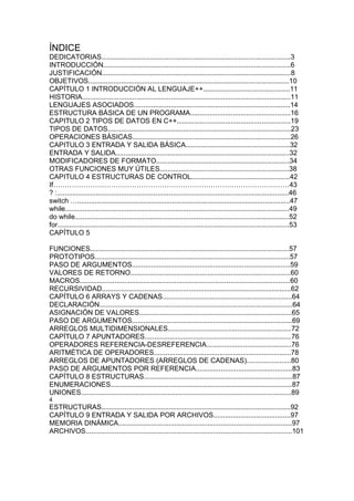 Este documento presenta una introducción al lenguaje de programación C++. Comienza con una breve historia del lenguaje, desde sus orígenes en el lenguaje C creado por Dennis Ritchie hasta su evolución a C++ de la mano de Bjarne Stroustrup. Luego describe algunos lenguajes asociados a C++ como C++ Builder de Borland y Visual C++ de Microsoft. El documento continúa explicando conceptos básicos de C++ como su estructura y tipos de datos.