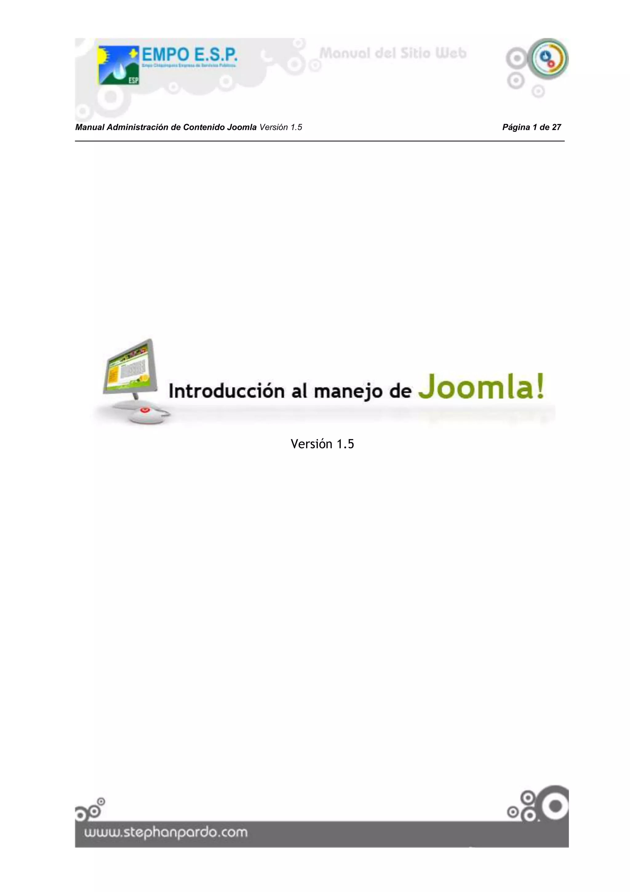Este documento presenta un resumen de tres oraciones o menos de cada sección del manual de usuario de Joomla 1.5. Explica conceptos básicos como secciones, categorías y artículos y cómo organizar el contenido. Luego detalla los pasos para crear una sección, categoría y artículo, así como construir menús, con el fin de publicar y navegar el contenido en el sitio web.