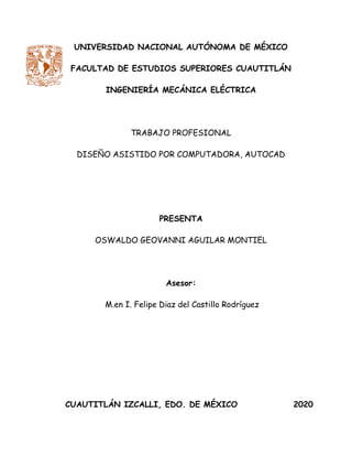 Este documento presenta un manual didáctico para la asignatura de diseño asistido por computadora utilizando el software AutoCAD. El manual contiene 8 capítulos que cubren conceptos básicos de dibujo técnico, diseño ingenieril, características y entorno de trabajo de AutoCAD, y 6 ejercicios prácticos guiados para que los estudiantes desarrollen su habilidad en el uso del software. El objetivo es que este manual sirva como una herramienta de apoyo en el proceso de enseñanza-aprendizaje de