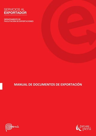 Este manual de documentos de exportación es una herramienta diseñada para optimizar la gestión documental en el comercio internacional, abordando aspectos legales, tributarios y logísticos en Perú. Incluye una amplia gama de documentos necesarios para las operaciones de exportación, así como los costos asociados a una documentación mal elaborada. Se enfatiza la importancia de una correcta planificación y capacitación en la elaboración de documentos para evitar sobrecostos y problemas logísticos.