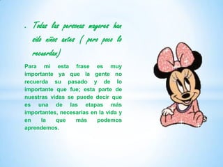 El documento contiene varias reflexiones sobre la vida y las relaciones entre las personas. Algunas de las ideas principales son: 1) Los niños a menudo tienen más imaginación que los adultos. 2) Es más fácil juzgar a otros que a uno mismo. 3) Lo esencial no siempre es visible a simple vista.