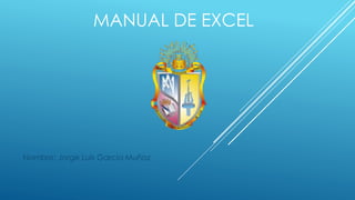 Este manual de Excel explica cómo crear funciones básicas mediante el uso de signos iguales y paréntesis, cómo acceder a la biblioteca de funciones en la pestaña Fórmulas, y cómo utilizar la función SUMA para sumar rangos de celdas mediante la sintaxis =SUMA(rango). También incluye secciones sobre cómo insertar gráficas y filas/columnas en Excel.